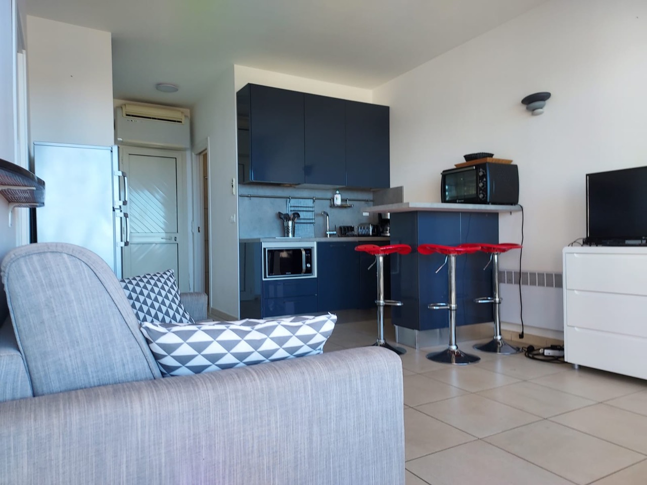 • Un salon avec cuisine entièrement équipée
